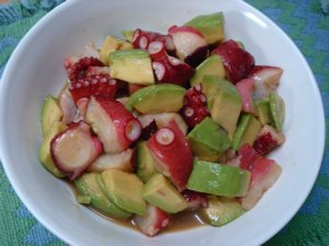 タコとアボガドを適当な大きさに切り、このドレッシングと和えるだけ